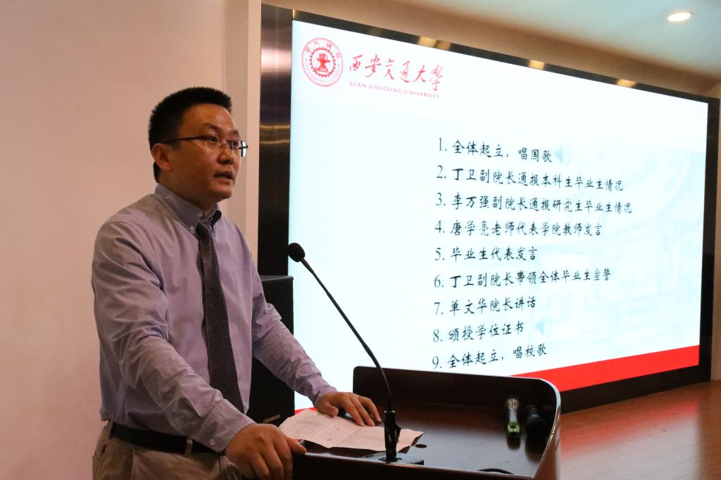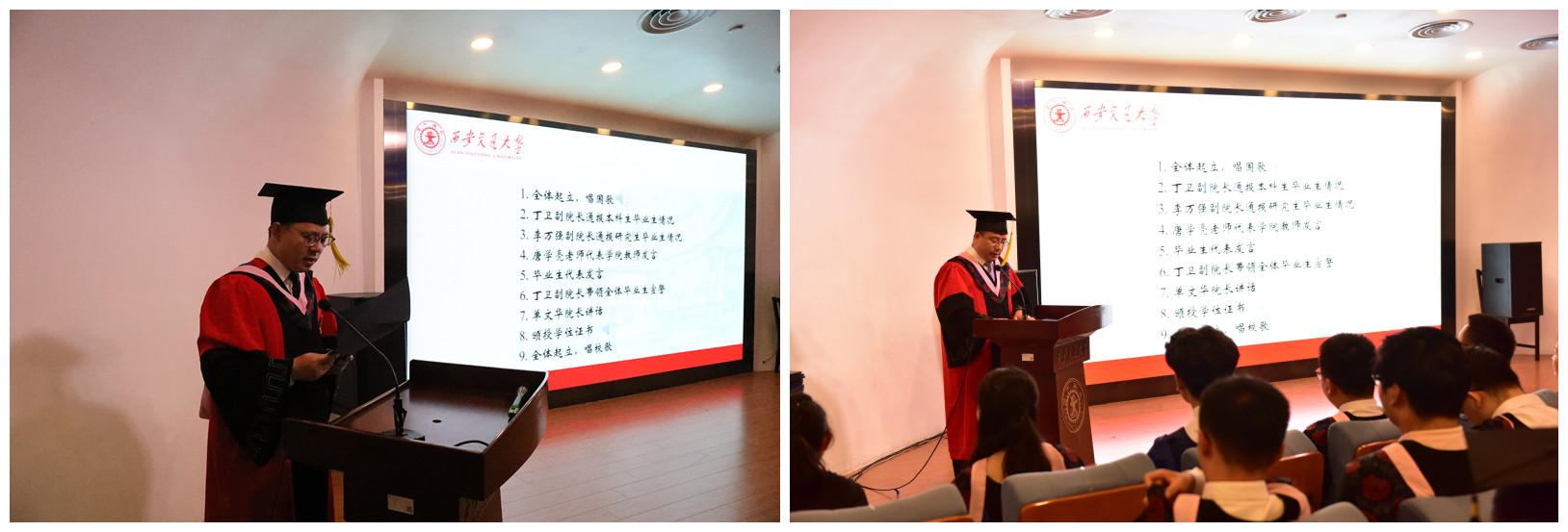 毕业典礼在庄严的国歌中开始。首先,丁卫副院长和李万强副院长分别通报了2021届本科生和研究生的就业情况。B体育(中国)2021届本科生到国内外一流高校深造的比例较往年大幅增长,研究生中有20余名研究生选择留在西部地区到祖国最需要的地方建功立业,另有5名研究生录取为选调生,前往基层、奉献社会、服务人民,用青春书写华彩篇章。