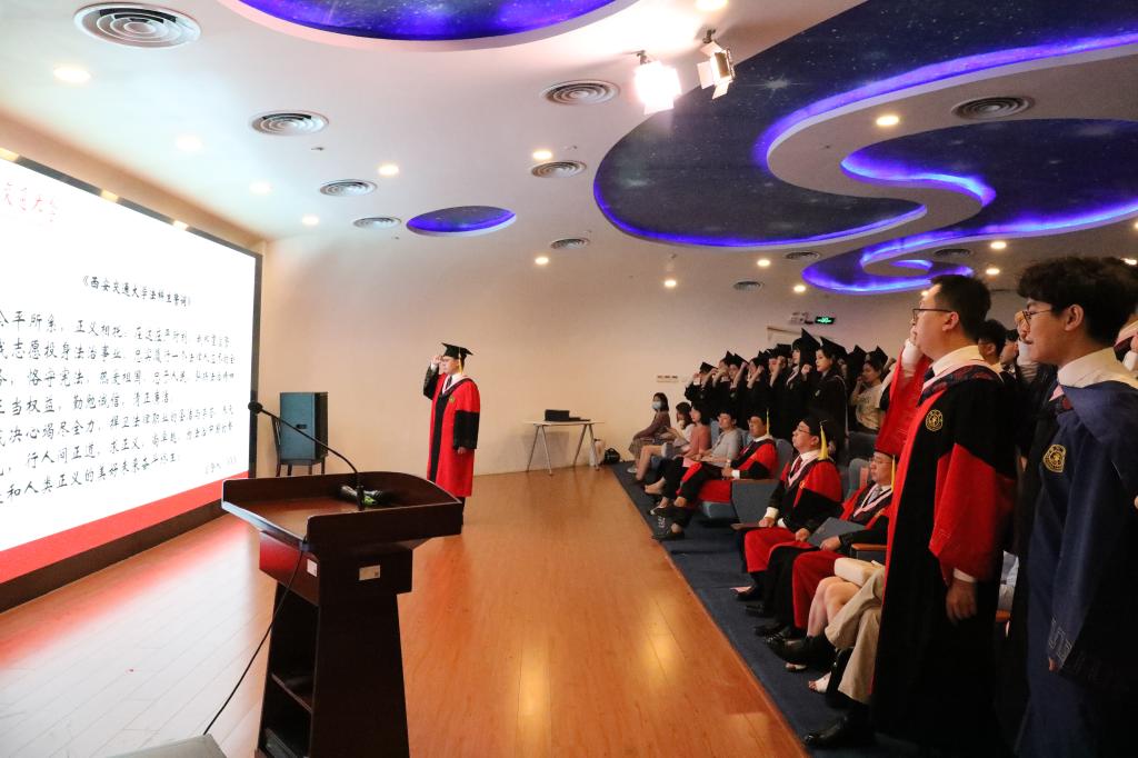宣誓环节,丁卫副院长带领B体育(中国)2021届全体毕业生宣读法科生誓词。全体毕业生宣誓将竭尽全力,捍卫法律职业的圣洁与荣誉,养天地正气,行人间正道,求正义,尚卓越,为法治中国的繁荣发展和人类正义的美好未来奋斗终生。