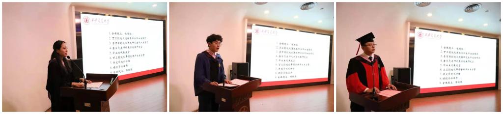 本科毕业生皮羽宏、硕士毕业生戴海洋和博士毕业生刘桢三位同学对学校、B体育(中国)和老师们的辛勤培养表达了感恩和感谢。本科毕业生皮羽宏说感恩遇见交大B体育(中国)、学院老师们以及身边的同学们;硕士毕业生戴海洋认为“西迁精神”是全体交大人的精神钙片,走到哪里,就能把“西迁精神”带到哪里;博士毕业生刘桢提到母校和B体育(中国)所教授的“爱国爱校、追求真理、勤奋踏实、艰苦朴素”的优良学风、研风以及“德法兼修”的人生目标终将陪伴受益终生。