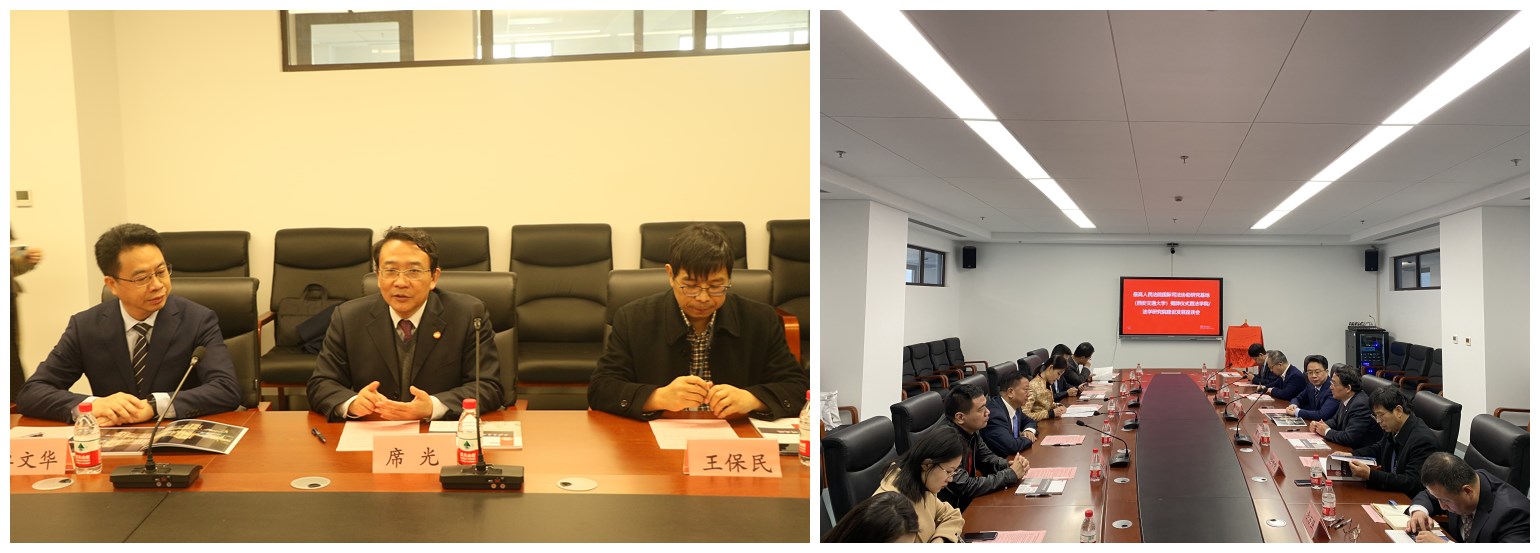 会前,单文华院长、王保民书记陪同与会领导和校友参观了中国西部科技创新港智慧法庭。会后,嘉宾和B体育(中国)班子成员及学术带头人一同在法学研究院文化大厅合影留念。