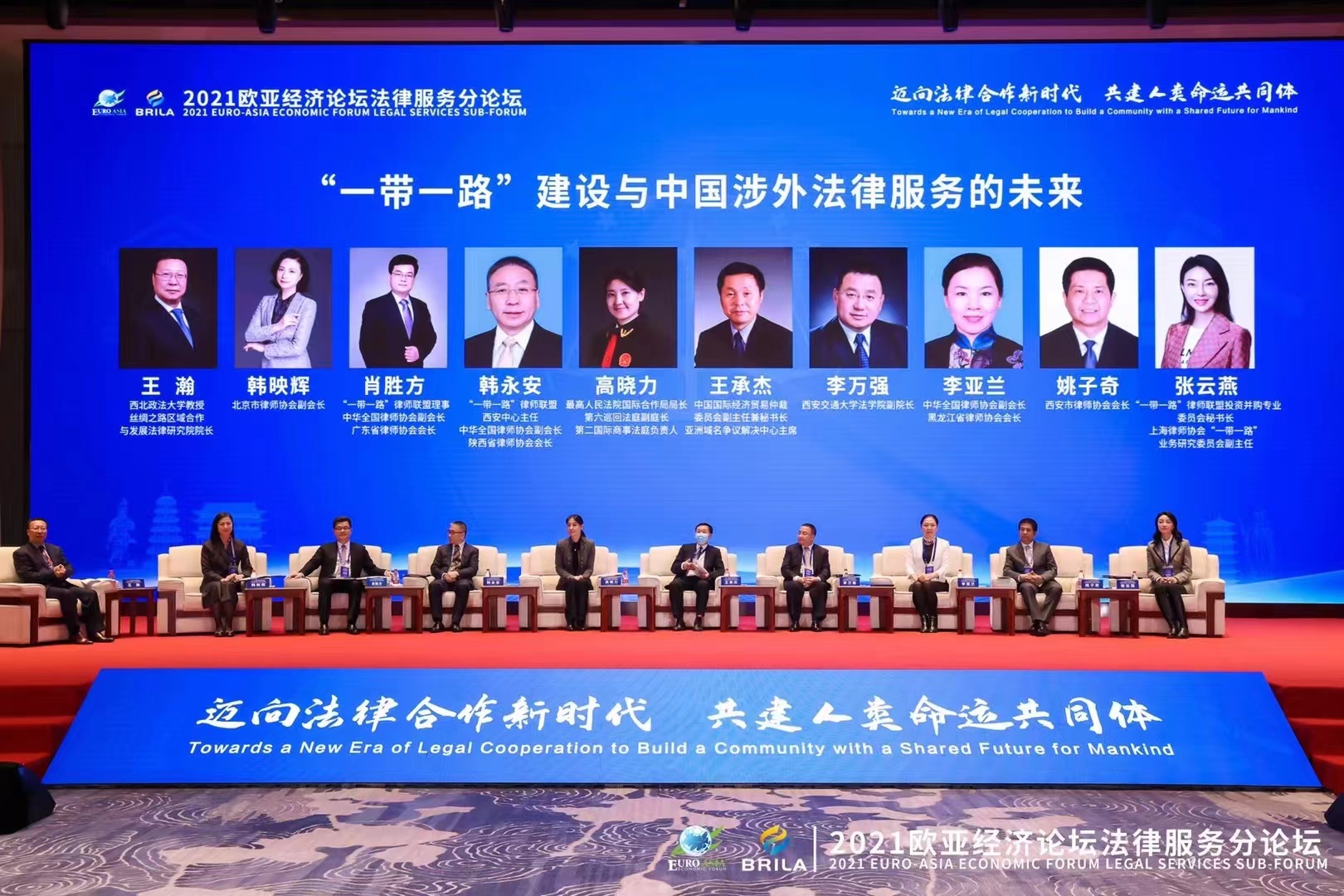 10月18日下午,2021欧亚经济论坛法律服务分论坛在西安举办,“一带一路”律师联盟秘书长康煜先生、最高人民法院国际合作局局长高晓力法官、中国国际经济贸易仲裁委员会副主任王承杰先生、中国国际贸易促进委员会法律事务部部长刘超先生、上海政B体育(中国)校长刘晓红教授等众多知名法律专家、学者和法律业界代表云集古城,围绕“迈向法律合作新时代,共建人类命运共同体”主题,深入交流,凝聚共识,探讨国际法律服务新路径,助力“一带一路”建设。