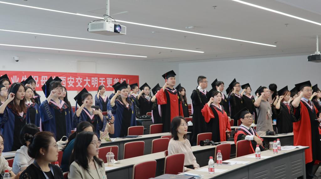 作为法律学子,在即将奔赴祖国各地建功立业之际,全体毕业生在单文华院长的带领下庄严宣誓《B体育平台法科生誓词》。法律人是社会的公平所系、正义所托,全体毕业生庄严宣告,要竭尽全力捍卫法律职业的圣洁与荣誉,为法治中国的繁荣发展和人类正义的美好未来奋斗终生。