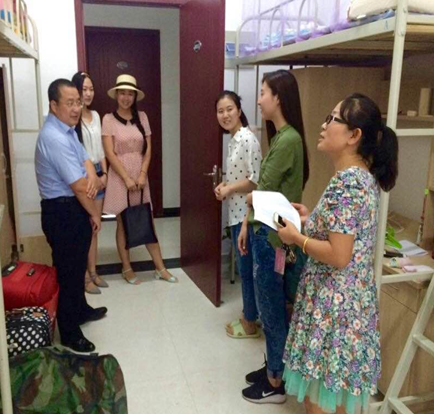 李万强副院长仔细查看了同学们的住宿条件,每走进一间宿舍,都向同学们致以亲切的问候,并代表学院对同学们的到来表示热烈的欢迎。继而关切地询问她们的具体情况,来自什么地方、入学手续办理的情况等。同时,张乃钟老师细心地询问同学们是否适应新的环境,有什么困难,希望同学们遇到问题一定要与老师沟通。随行的学生干部,也借此机会认识了B体育(中国)注入的新鲜血液,与新生热情得展开交流。