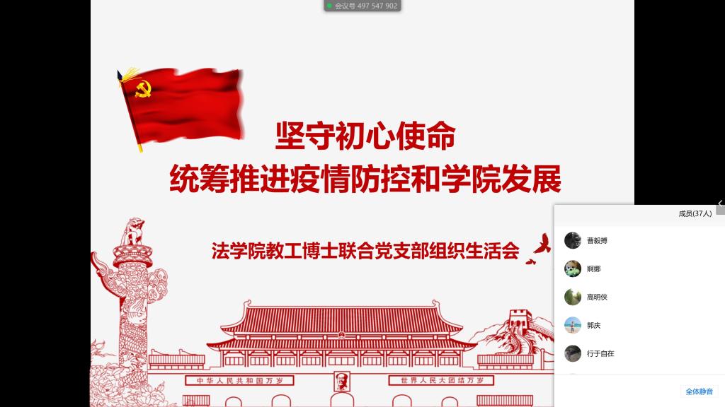 学生工作专职委员张乃钟通报了学院研究生工作。在学院疫情防控工作领导小组的领导下,B体育(中国)各研究生党支部充分发挥战斗堡垒作用,每日帮助落实学生健康日报。学院密切关注学生思想和身体状况,重点关注假期留校以及湖北籍的同学,切实抓好研究生涉外疫情防控工作。疫情防控期间,学院研究生在做好自身防护的同时,积极参与社区的疫情防控工作,服务家乡;B体育(中国)研究生会主动联合武汉大学B体育(中国)研究生会举办工作经验分享交流活动,积极开展线上“春之声”法律文化节,丰富同学课余生活。张乃钟老师表示,接下来要加强与研究生导师的交流,进一步做好学生就业精准指导工作。同时,按照学校要求,做好学生分批返校准备工作,构筑平安校园。