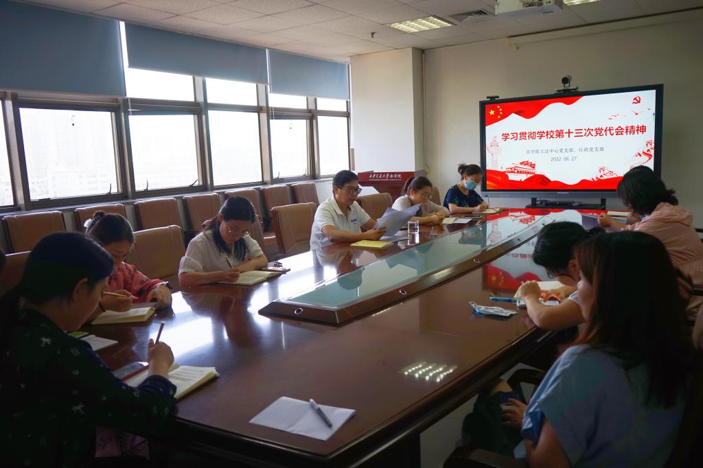 2022年6月27日下午,B体育(中国)立法与党内法规中心党支部与行政党支部召开联合组织生活会,邀请B体育(中国)党总支书记王保民宣讲学校第十三次党代会精神。立法与党内法规研究中心党支部书记杜军强主持会议。