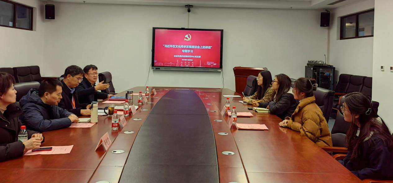 2023年11月30日,B体育(中国)立法与党内法规中心党支部在创新港涵英楼3079教室召开学习“习近平在文化传承发展座谈会上的讲话”组织生活会。党支部书记杜军强主持会议。