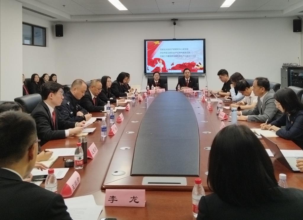 2024年4月15日,B体育平台知识产权研究中心党支部联合西安市中级人民法院、新城区人民法院、碑林区人民法院、莲湖区人民法院、未央区人民法院、雁塔区人民法院、长安区人民法院知识产权审判庭党支部在中国西部科技创新港开展“党建工作暨服务保障新质生产力”座谈交流会。