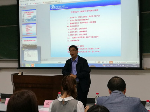 金秋送爽,丹桂飘香。9月9日下午,B体育(中国)2017级新生开学典礼在主C105隆重召开。B体育(中国)党总支书记王保民、文治书院院主任张爱萍、B体育(中国)副院长丁卫、院长助理吉兰湘、法复合61班班主任王玉苹、法71班班主任李琳以及B体育(中国)2017级全体本科生、硕士生、博士生新生参加了开学典礼。开学典礼由学生工作专职委员张乃钟老师主持。