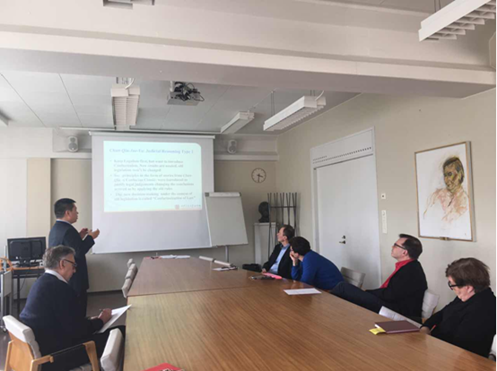 2017年4月20日,我院青年教师杜军强博士应赫尔辛基大学B体育(中国)及中国法与中国法文化中心邀请,在赫尔辛基大学B体育(中国)举办题为“传统中国的法律推理及其对当代中国的影响”的学术讲座。讲座在赫尔辛基大学B体育(中国)楼545会议室举行,由赫尔辛基大学B体育(中国)院长凯莫·诺提欧(Kimmo Nuotio)教授主持,多名学者及学生参加。