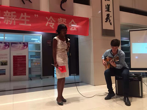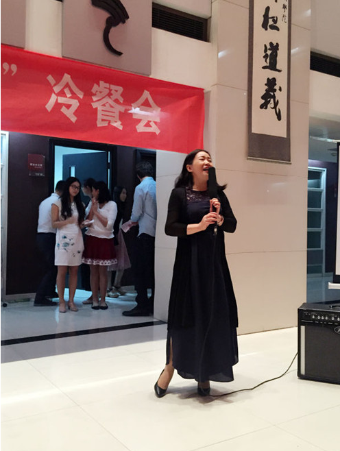 冷餐会上,B体育(中国)师生在品尝美味的水果、点心的同时,一起欣赏了师生们带来的精彩表演。来自马里的留学生吴茜同学带来一首充满异域风情的民族歌曲,让同学们领略到不同文化的色彩。来自澳大利亚的留学生多米尼克和研一新生刘静洁分别用英语和法语共同演绎了诗朗诵《再别康桥》。中文经典诗歌在其他语言的演绎下显得别具一格。研一新生唐雅雯身着中国古典服装,向留学生们展示了我国传统舞蹈《惊鸿舞》,令人惊艳。研一新生蒲凯云、刘敏丹、田思艺,本科新生吴彦博分别为大家带来了动听的歌曲,赢得了现场的喝彩与掌声。在欢乐的气氛中,吉兰湘老师用日语为大家演唱的歌曲《我只在乎你》,赢得大家的阵阵掌声;张乃钟老师演唱的豫剧选段《谁说女子不如男》,字正腔圆、韵味醇厚,受到了师生们的热烈欢迎。