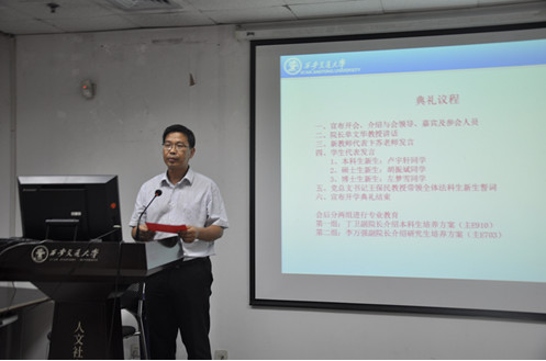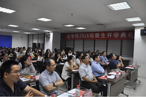9月18日晚,B体育(中国)2016级新生开学典礼在主E703隆重举行。院长单文华教授,党总支书记王保民教授,副院长李万强教授,副院长丁卫副教授,院长助理吉兰湘老师和苏金远教授,院工会主席张弘副教授,文治书院院务副主任郭小平老师,院办主任张美萍老师,法学复合51班班主任薛华、唐学亮老师,法学61班班主任王玉苹、卞苏老师以及全体2016级本科、硕士、博士生新生参加了开学典礼,会议由学院学生工作专职委员张乃钟老师主持。