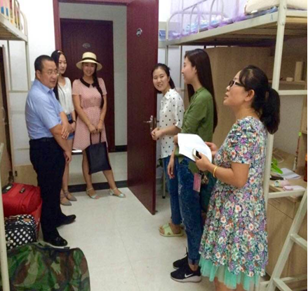 李万强副院长仔细查看了同学们的住宿条件,每走进一间宿舍,都向同学们致以亲切的问候,并代表学院对同学们的到来表示热烈的欢迎。继而关切地询问她们的具体情况,来自什么地方、入学手续办理的情况等。同时,张乃钟老师细心地询问同学们是否适应新的环境,有什么困难,希望同学们遇到问题一定要与老师沟通。随行的学生干部,也借此机会认识了B体育(中国)注入的新鲜血液,与新生热情得展开交流。