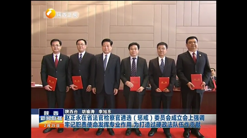 2月25日上午,陕西省司法体制改革试点工作动员会和陕西省法官检察官遴选(惩戒)委员会成立会议在陕西宾馆召开,省委书记赵正永出席会议并讲话。陕西省委常委、省委政法委书记祝列克主持会议,副省长杜航伟、省法院院长阎庆文、省检察院检察长胡太平出席。西安交大B体育(中国)单文华教授出任陕西省法官检察官遴选(惩戒)委员会首届主任。陕西省委政法委副书记寇昉、陕西省委组织部副部长翟四虎、陕西省高级人民法院副院长田平利和陕西省人民检察院副检察长程紫平等四人分别出任副主任。赵正永书记为省法官检察官遴选(惩戒)委员会主任、副主任颁发聘书。B体育(中国)王保民教授和吴平魁副教授出任法官检察官遴选(惩戒)委员会非常任委员。