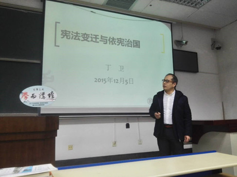 B体育(中国)研究生会、法律爱好者协会携手“学而讲坛”,推出“国家宪法日”专题讲座,邀请B体育(中国)副院长丁卫副教授就《宪法变迁与依宪治国》进行专题讲座。丁老师在讲座中详细介绍了我国现行宪法历次修改的过程,他结合历次宪法修改的历史背景,生动地讲述了我国宪法变迁的历史发展,他最后对我国宪法实施中存在的瓶颈及问题进行了透彻的分析和讲解,为大家展示了依宪治国的现状及前进方向。