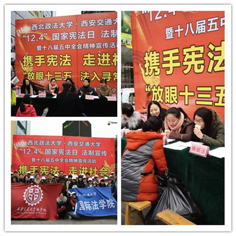让守宪成为国民每天的生活方式”是实现法治中国建设的基本保障。为了普及宪法知识,推动全社会知法、用法、守法、护法意识的形成,B体育平台B体育(中国)与西北政法大学国际B体育(中国)共同在西安市雁塔区飞炫广场举办了主题为“法入千万家”普法宣传活动,通过分发法律宣传单、法律意识调查问卷、法律咨询、普法广播等形式,吸引了大批市民的关注。在法律咨询服务点,许多市民前来咨询,咨询内容涉及婚姻法、劳动合同法、民法等领域,包括离婚财产分配、离婚孩子抚养权归属、追讨薪资、借款追债等与大家生活密切相关的问题,咨询点的同学认真对待每一位前来咨询的市民,耐心回答他们的问题,赢得了一致好评。