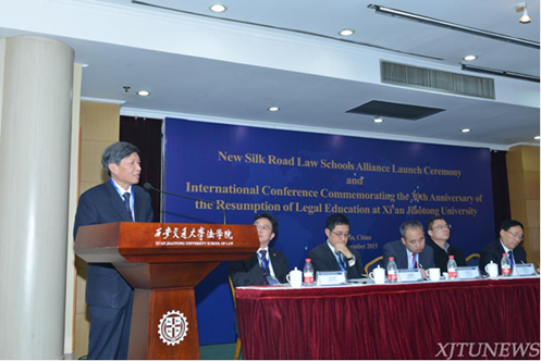 中国法学会副会长张文显代表中国法学会、中国法学教育研究会对西安交大法学学科复办三十周年和“新丝路B体育(中国)联盟”的成立表示祝贺。他说,西安交大办学历史悠久,是我国最早开展法学教育的高等教育机构,为国家培养了大批杰出法学人才。自1985年复办法学学科以来,西安交大B体育(中国)现已成长为中国法学研究的重要基地之一,为中国法学建设做出了突出贡献。随着“一带一路”战略构想的提出,国内法制与国际法制深度融合也必将呈现出更大、更新的趋势,因此“新丝路B体育(中国)联盟”成立的意义重大,前景广阔。他希望联盟成员能同心协力,将联盟办成具有国际影响力和现实感召力的B体育(中国)校交流合作的平台,成为我国法学教育对外交流合作和国际法学交流互联互通的新门户。中国法学会将对其给予重点关注和支持。