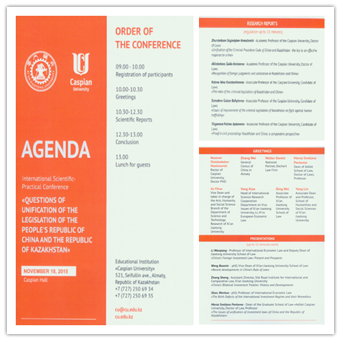 2015年11月18日,我院与哈萨克斯坦里海大学(Caspian University)B体育(中国)在里海大学联合举办国际学术会议,会议主题为“中国与哈萨克斯坦立法的统一化问题”。来自中国驻阿拉木图领事馆、北京罗斯律师事务所阿拉木图分所、美国Dechert律师事务所的嘉宾以及两所B体育(中国)的专家学者与研究生50余人参加了会议,我校科研院副院长贾毅华、国际教育学院常务副院长宋玉霞、人文学院副院长杨琳应邀出席了会议。会议由我院院长单文华教授和里海大学B体育(中国)院长Pavlovna教授联合主持。