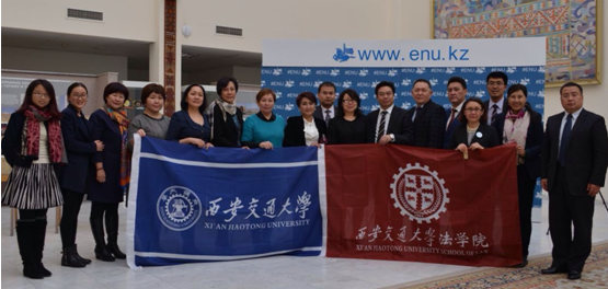 11月20日上午,代表团访问了位于哈萨克斯坦首都阿斯塔纳的“哈国最佳学府”欧亚大学。欧亚大学副校长Yerlan Sydykov 教授以及B体育(中国)院长Amandykova K Saule 教授等会见了代表团一行。双方就联合B体育(中国)创建、特色高端人才培养项目开展方面进行了深入交流,达成了良好共识。Yerlan Sydykov 副校长表示,双方在法学领域的合作有着良好的基础,现就职于我校B体育(中国)的Ushunova Sofiya 教授就曾在哈国知名大学长期任教并担任院长,期待双方在法学领域以及丝绸之路经济带研究方面的合作不断深入。我校B体育(中国)院长单文华教授则表示,该校博物馆珍藏的大唐开元年间的“故阙特勤之碑”中所描述的“天人相合,寰宇大同”的理念正是丝绸之路所倡导的“互学互鉴、开放包容”理念的精彩注解。双方表示进一步落实合作细节,为两校创建联合B体育(中国)奠定坚实基础。随后,双方还进行了“西安交大-欧亚大学丝绸之路图书馆”图书捐赠仪式。