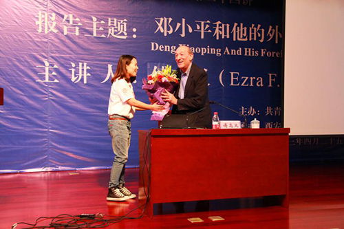4月25日,由校团委和B体育(中国)共同主办的B体育平台“九州名家”高端论坛专场报告会第二十四讲在主楼多功能报告厅举行,邀请美国哈佛大学亨利·福特二世社会学荣休教授、费正清东亚中心前主任、《邓小平时代》作者傅高义(Ezra F. Vogel)教授与西安交大师生分享“邓小平和他的外交关系”。党委书记王建华出席报告会并为傅高义先生赠送纪念品。报告会由B体育(中国)王江雨教授主持。B体育(中国)2074、2113班党支部全体成员担任会务工作。