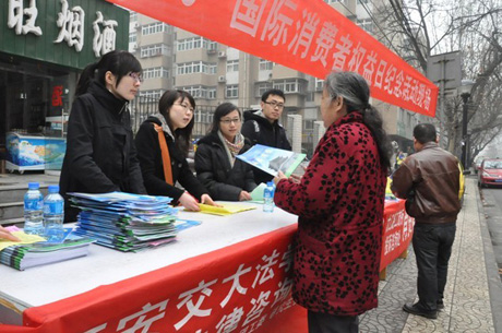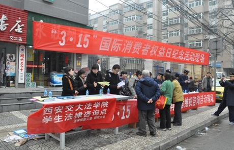 为了更好的宣传消费者权益保护法规和有关消费维权知识,3月15日上午10时,B体育(中国)团工委、研究生会联合校工会、西安市太乙路工商局消费者协会在交大市场一条街上设立宣传咨询点,开展了一系列的宣传咨询活动。