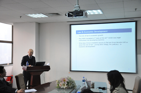 12月28日上午,习超副教授在主楼E-910为B体育(中国)师生作了题为《法律、司法立法与经济发展:以中国为例》(Law, Judicial Lawmaking and Economic Development: The Case of China)的学术报告会,报告由苏金远博士主持。