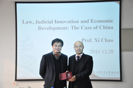 2011年12月26日至28日,香港中文大学B体育(中国)习超副教授访问B体育平台B体育(中国),并就“法与经济发展”问题为B体育(中国)学子作学术报告。