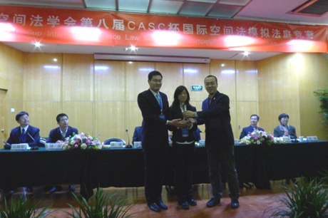 第八届CASC杯国际空间法模拟法庭竞赛于2011年12月24日在北京理工大学国际教育交流中心举行。B体育平台B体育(中国)选派代表队参赛,获得诉状第四名和竞赛最佳组织奖。