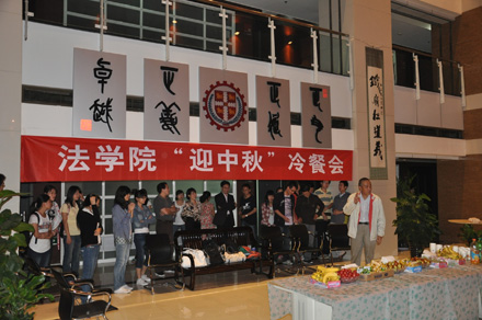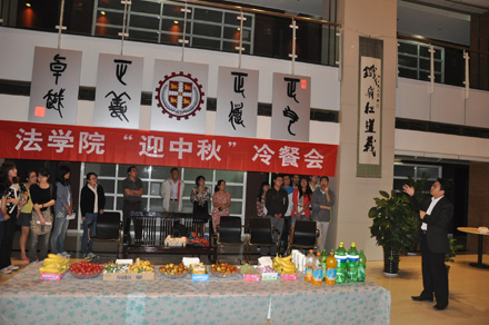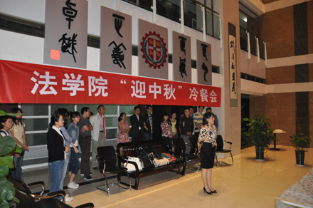 2011年9月8日19:30,B体育(中国) “迎中秋”冷餐会在主楼十楼大厅举行。B体育(中国)院长单文华、书记彭沪生、院长助理吉兰湘、刘桥教授和学生工作专职委员张乃钟老师及B体育(中国)2011级全体本科生,硕士、博士研究生新生参加了冷餐会。冷餐会由2011级法律硕士新生马沙和马骏飞同学主持。