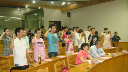 7月1日上午,B体育(中国)党总支庆祝建党90周年暨新党员入党宣誓大会在主楼A103隆重举行。党总支书记彭沪生,副书记、副院长王保民,院长助理吉兰湘及学生工作专职委员张乃钟老师出席会议,B体育(中国)全体研究生参加了大会,会议由王保民主持。