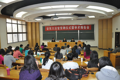 4月13日上午,应我校邀请,陕西省高级人民法院院长安东大法官受聘仪式暨学术报告会在主楼B103隆重举行。受聘仪式和学术报告会由B体育(中国)院长单文华教授主持。B体育(中国)党总支书记彭沪生、副院长王保民等参加了受聘仪式和学术报告会。