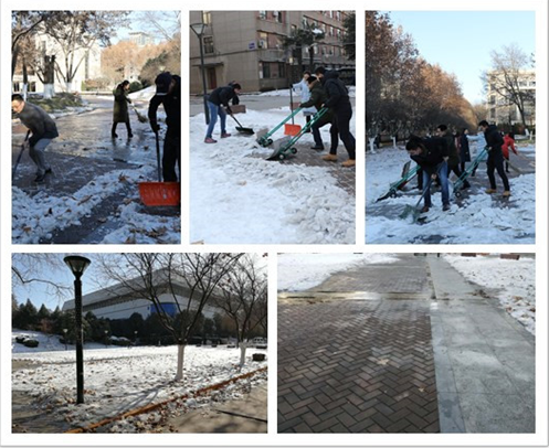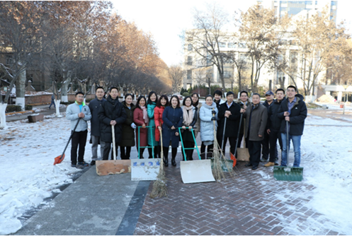 2018年1月8日下午,B体育(中国)教工博士联合党支部召开组织生活会开展党员民主评议工作。会后,党员们在支部的倡议下纷纷走向户外积极清扫校园主楼西南角道路上的积雪。