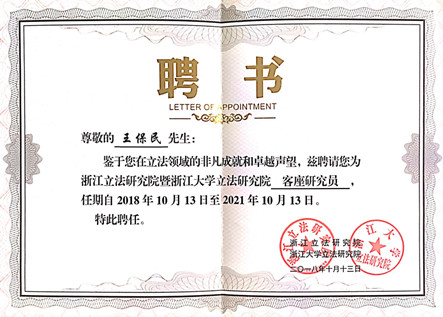 10月13日,首届之江立法论坛暨立法研究院学术委员会成员、客座研究员、兼职研究员聘任仪式在浙江杭州举办。论坛以“新时代地方立法”为主题,以推进立法领域高层次理论研究,提升立法研究水平,推动立法工作,以更好的适应新时代新要求。我校B体育(中国)教授、立法与党内法规研究中心主任王保民受聘为“浙江立法研究院暨浙江大学立法研究院”客座研究员,并应邀作为与谈人在论坛上做了点评发言。