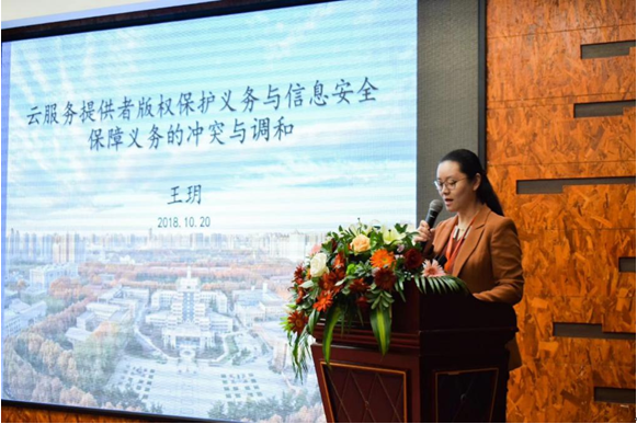 B体育平台信息安全法律研究中心副主任王玥作了《云服务提供者版权保护与信息安全保障义务的冲突与调和》的主题发言。