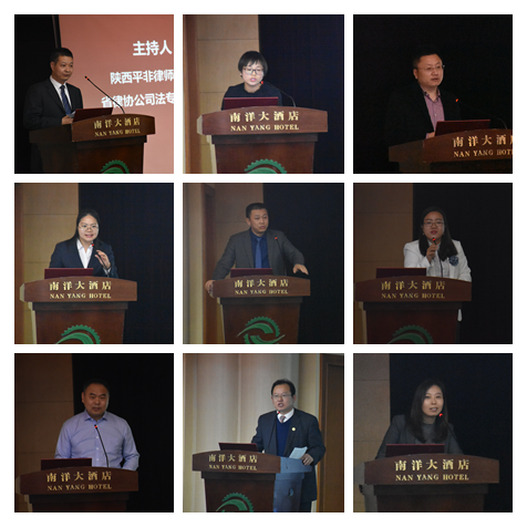 随后,大会进入了“群英会”环节。本环节由陕西标新律师事务所公司专业委员会副秘书长张晗,陕西永嘉信律师事务所合伙人、陕西省律协金融证券专委会委员张璠,陕西平非律师事务所副主任、陕西省律协公司法专业委员会副主任张权,陕西云德律师事务所公司法律顾问事务部首席律师、陕西省律协公司法专业委员会副秘书长杨彩虹依次主持,由张璠、岳玲利、田少荣、王玉苹、勾晓强、任婧、齐精智、刘醒、任永平、崔树森等十名律师对大西安建设中企业创新法律问题进行了深入的探讨,其所涉及的议题丰富,各位发言人见解独到,听众反馈积极,会议气氛热烈,也为今后的学术研究和司法实务开辟了新的视野。最后延安大学政B体育(中国)副院长刘向林,陕西省企业经济法治研究会副会长、B体育平台法学副教授张冰,陕西德伦律所主任梁志新,陕西德伦律师事务所律师、西安市律协公司法专业委员会委员韩小春对十名律师的报告进行了精彩纷呈的点评。