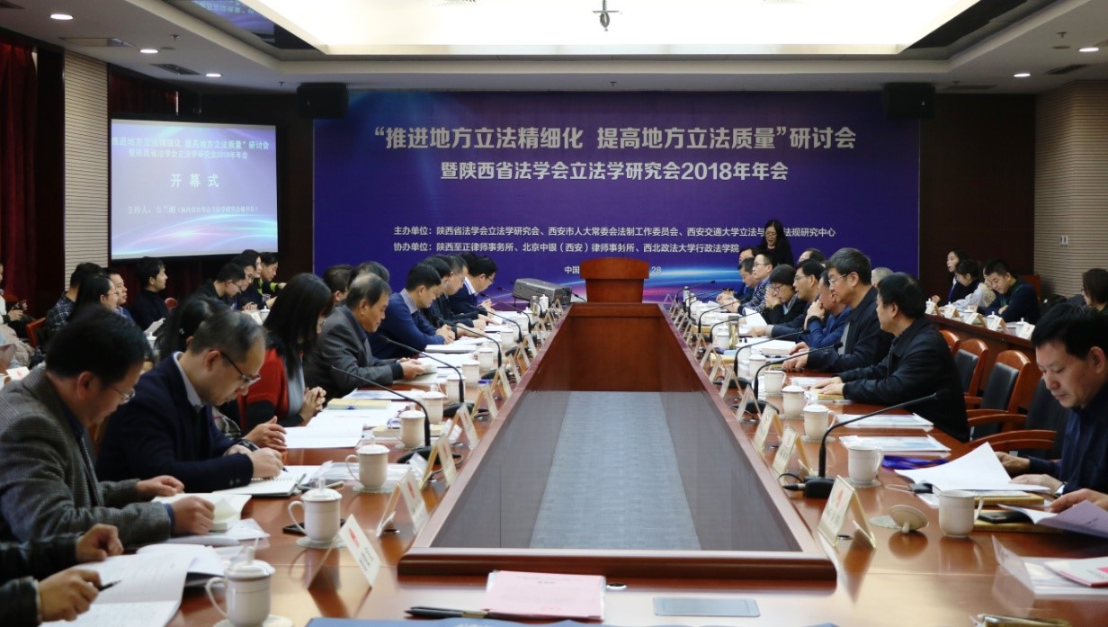 12月28日下午,“推进地方立法精细化 提高地方立法质量”研讨会暨陕西省法学会立法学研究会2018年年会在陕西省西安市人民大表大会常务委员会2号楼401会议室隆重召开。本次会议由陕西省法学会立法学研究会、西安市人大常委会法制工作委员会、B体育平台立法与党内法规研究中心主办,陕西至正律师事务所、北京中银(西安)律师事务所、西北政法大学立法研究中心、西北政法大学行政B体育(中国)协办。来自B体育平台、西北政法大学、西北大学、陕西师范大学、西北工业大学、中共陕西省委党校、延安大学、中南财经政法大学、陕西省社会科学院等教学科研单位和来自陕西省委政法委、陕西省人大常委会、西安市人大常委会以及宝鸡、商洛、铜川、榆林、韩城等陕西省其它地市人大常委会、西安市人民检察院、西安市中级人民法院、陕西至正律师事务所、北京中银西安律师事务所等法律实务部门的80余位代表齐聚一堂,围绕“推进地方立法精细化 提高地方立法质量”的主题展开了深入探讨。