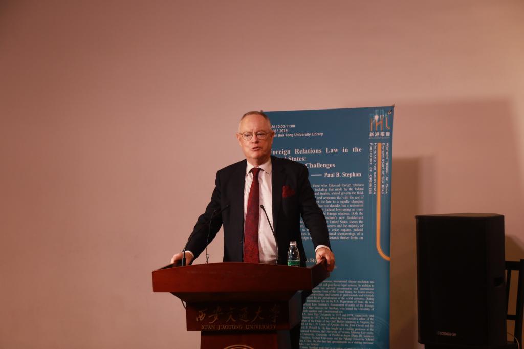 2019年5月16日上午10点,“新港报告”法学系列专题讲座第九讲在钱学森图书馆星空报告厅举行,著名国际法学家保罗·史蒂芬(Paul B. Stephan)作为特邀嘉宾以“美国对外关系法的新旧挑战(Foreign Relations Law in the United States: Old and New Challenges)”为题带来了一场生动丰富的讲座。本次报告由B体育(中国)院长单文华教授主持。