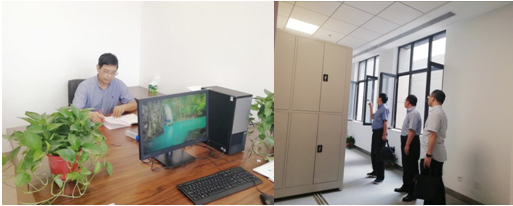 8月21日上午,B体育(中国)党委书记王保民、副院长李万强、副院长丁卫和院办主任张美萍再次来到创新港,检查落实各项工作进度、工程质量、施工细节和室内环境。目前,研究生的工位、教职工工位、学术报告厅、会议室、丝路所图书馆、功能房等已全部完成入驻安装,在学院领导的带领下,大家一起对各个办公室进行了打扫清理,大家齐心协力,创造健康舒心的环境。