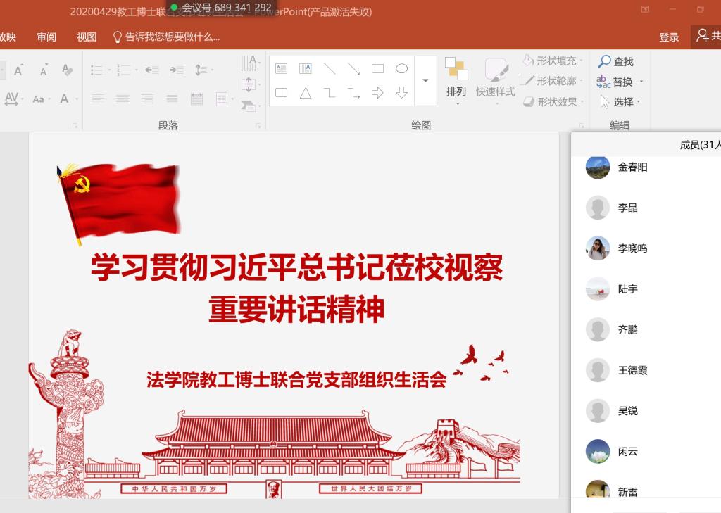 4月29日下午,B体育(中国)教工博士联合党支部开展线上组织生活会,深入学习贯彻习近平总书记莅校视察重要讲话精神。党支部成员通过网络平台积极参加学习,本次活动由支部书记曹毅博主持。