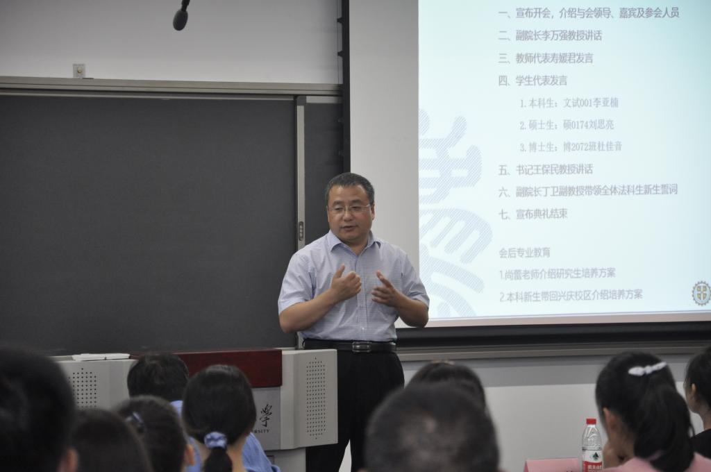 随后,B体育(中国)党总支书记王保民教授发表总结讲话。他首先对各位新同学加入西交大B体育(中国)表示热烈欢迎和衷心祝贺。其次他简要介绍了B体育(中国)的发展情况和特色,即“成立虽短,但发展动能强大、发展迅速;招生数量不多,但人才培养特色鲜明、质量和社会认可度高;教师规模不大,但学历层次高、国际化程度高、成果卓著;虽是理工见长的大学办法学,但是学校平台高、办学条件和资源优越。最后王保民教授结合自身学生管理的经验,结合以往生动生活实例,对全体新生同学提出了几点期望和要求。一是要明确定位,尽快适应新的角色。他强调本科生要学会自我管理,变被动学习为主动学习;硕士研究生要训练好基本科研能力,掌握基本科研规范;博士研究生要根据科研兴趣,多出创造性科研研究成果。二是全面发展,突出重点。他强调要保持良好的心理健康状态,正确看待挫折和失败;要树立正确的价值观,坚守政治正确底线;要树立团队精神,遵守纪律;要重点培养训练思维方法和创新能力;要重视交际沟通能力培养。三是要牢记“院训”,争做卓越交大法律人。他强调要融入西交大的文化,传承“西迁精神”,谨守“校训”和“院训”,做一个有情怀的卓越的交大法律人。