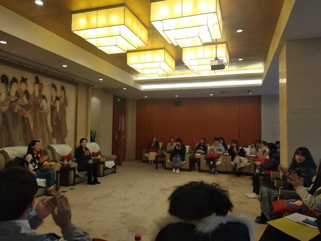 实践课的第二个环节是“互动交流”:B体育(中国)师生与高静怡老师进行了更深一步的学习座谈交流。刘丽娜副教授询问了博物馆文创活动以及实现教育功能的途径,高静怡老师列举说明了博物馆是根据系列设置课程,分别有国家级系列的展览、根据24节气设置的展览、有传统节日课程以及一些比如“彩陶中华”类型的临时展览。刘丽娜副教授还补充说明了博物馆是公益性质的,还以成都和上海为例给同学们讲解了博物馆对于研学活动的管理模式。