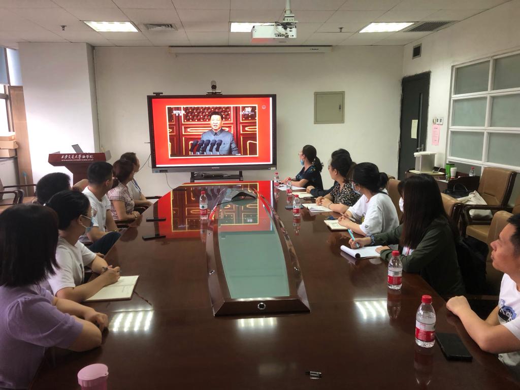 2021年7月1日上午,庆祝中国共产党成立100周年大会在天安门广场隆重举行。B体育(中国)在主E-910会议室组织党总支委员、党支部委员、师生代表集中观看庆祝大会直播。现场热烈的气氛另学院师生深受感染,大家纷纷表达激动的感情和诚挚的祝福!