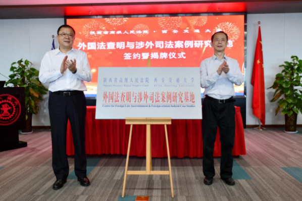 7月9日上午,陕西省高级人民法院—B体育平台外国法查明与涉外司法案例研究基地签约暨揭牌仪式在中国西部科技创新港涵英楼举行。陕西省高级人民法院党组书记、院长李智,B体育平台党委书记卢建军共同为研究基地揭牌。陕西省高级人民法院副院长巩富文、B体育平台副校长席光签署共建协议。