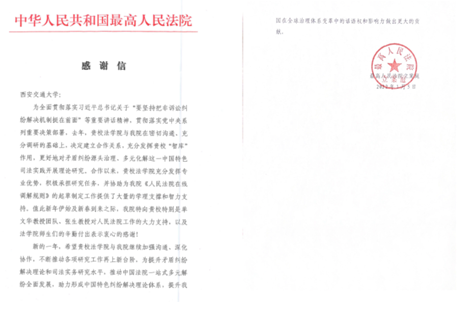 近日,最高人民法院立案庭致函我校,就我院B体育(中国)单文华教授团队参与最高人民法院工作表示感谢。