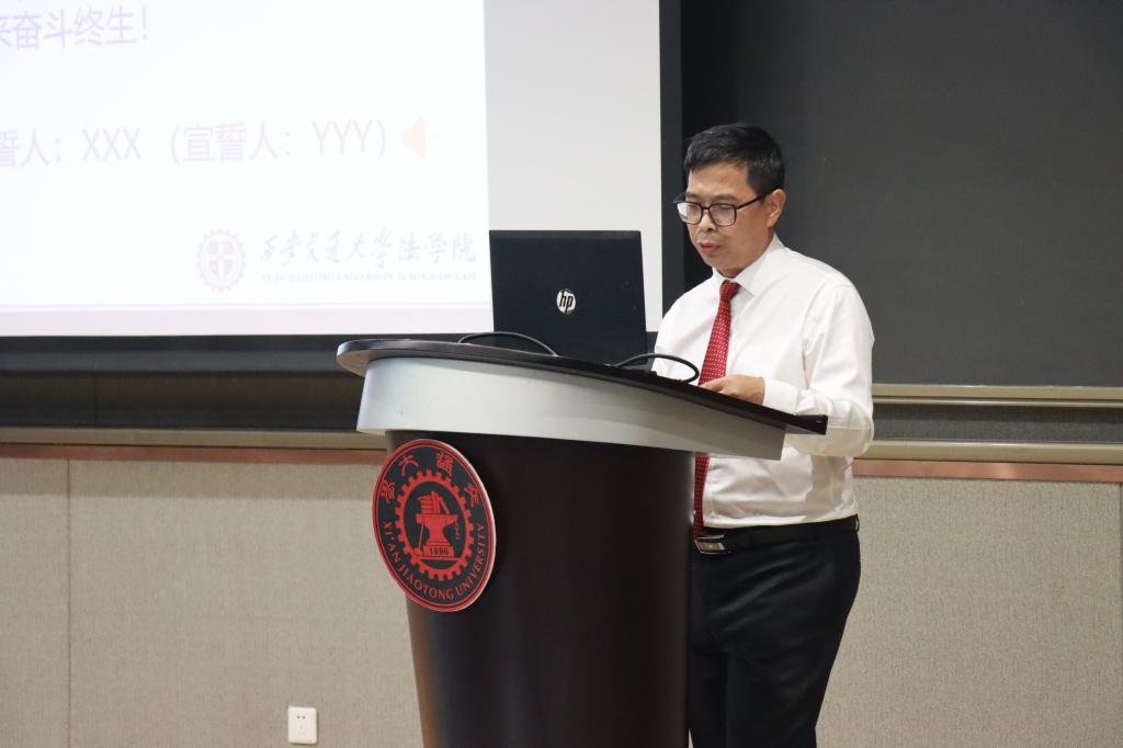 接着,丁卫副院长带领全体法科生新生庄严宣誓:“公平所系,正义相托。在这庄严时刻,我郑重宣誓:我自愿投身法治事业,忠实履行一个法律人应尽的全部义务,恪守宪法,热爱祖国,忠于人民,弘扬法治精神,维护正当权益,勤勉诚信,清正廉洁。我决心竭尽全力,捍卫法律职业的圣洁与荣誉,养天地正气,行人间正道,求正义,尚卓越,为法治中国的繁荣发展和人类正义的美好未来奋斗终身!”