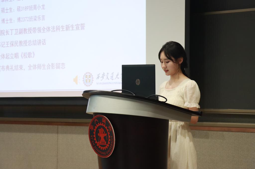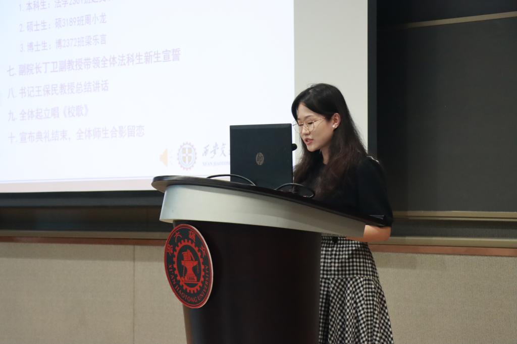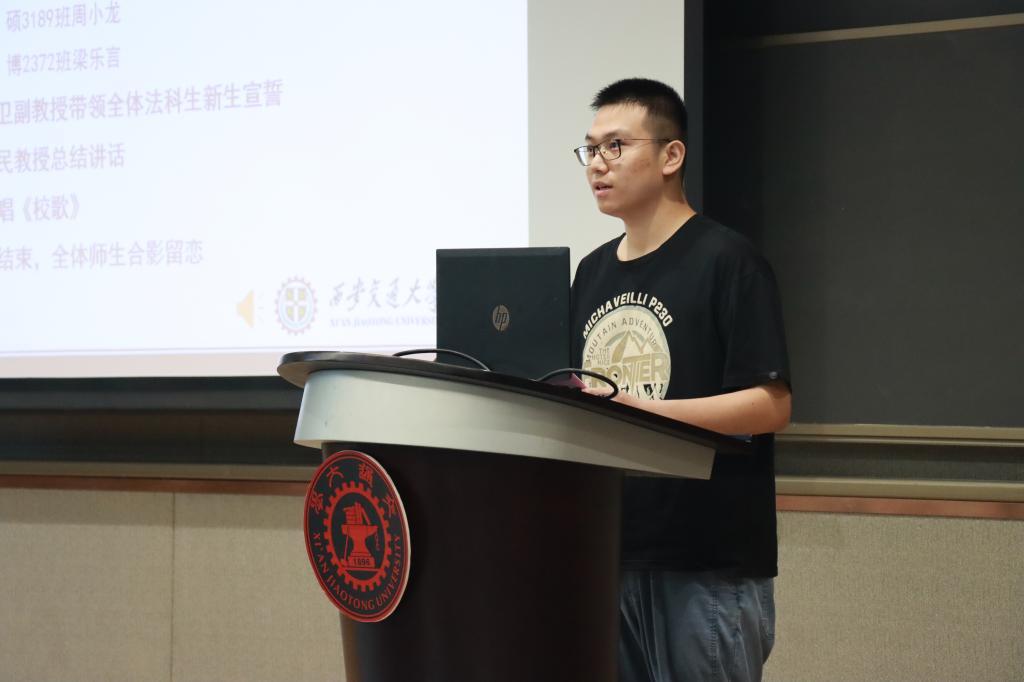 在学生代表发言环节,本科生新生代表赵文琪表达了进入交大B体育(中国)的激动之情,言语之间流露着初学者的法治信仰和家国情怀。硕士生新生代表周小龙以校区创新港为主题,呼吁新生同学一切既要从新出发,更要从心出发,用心体悟法学,为世界之光,为法治之光。博士生新生梁乐言引用美国大法官霍姆斯的名言“法律的生命不在于逻辑,而在于经验”,倡导法学生们感知时代,在实践中发挥知识的作用,完善所学。