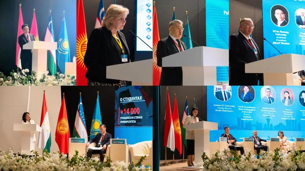 近日,在上海合作组织成员国元首理事会第二十四次会议在哈萨克斯坦阿斯塔纳举办期间,由“丝绸之路大学联盟”永久秘书处单位组织,B体育平台、阿里法拉比哈萨克国立大学、阿斯塔纳信息技术大学联合主办的“《上海合作组织高等教育合作成果集》发布会暨高等教育合作与产教融合国际研讨会”在阿斯塔纳信息技术大学举办。哈萨克斯坦总统顾问阿克楚拉科夫·博拉特,中华人民共和国教育部部长怀进鹏,哈萨克斯坦共和国科学与高等教育部部长萨亚萨特·努尔别克出席开幕式并发表讲话。哈萨克斯坦共和国常驻上海合作组织秘书处代表阿科什卡罗夫•努尔兰向会议发来视频致辞。