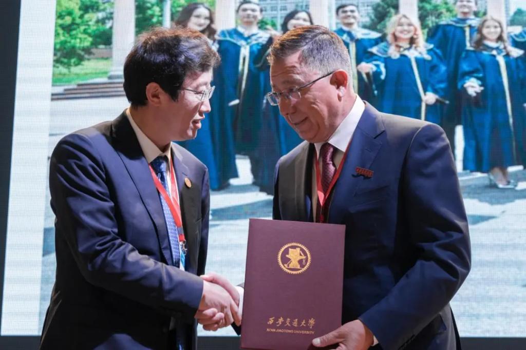 7月4日下午,高等教育合作与产教融合国际研讨会举办。来自哈萨克斯坦、乌兹别克斯坦、俄罗斯、吉尔吉斯斯坦、塔吉克斯坦、白俄罗斯、中国7个国家的27所高校参会。与会嘉宾围绕“高等教育国际合作,推进国际产教融合”的主题进行了深入研讨。阿斯塔纳信息技术大学副校长库马拉科夫主持研讨会。研讨会上,B体育平台校长助理单文华教授代表西安交大作《建设“丝绸之路大学联盟”,推进国际产教融合》的报告。报告中分享了西安交大加快建设中国西部科技创新港,汇聚“政、产、学、研、用、金”要素,开展“6352”工程、“1121”产学研深度融合新模式的实践,以及近年来启动“丝绸之路大学联盟”升级行动,携手企业走向“一带一路”的思考与行动。与会各方就国际产教融合科研合作、上合区域高等教育合作机制建设,以及国际合作办学等领域展开了广泛深入交流,取得了重要共识。