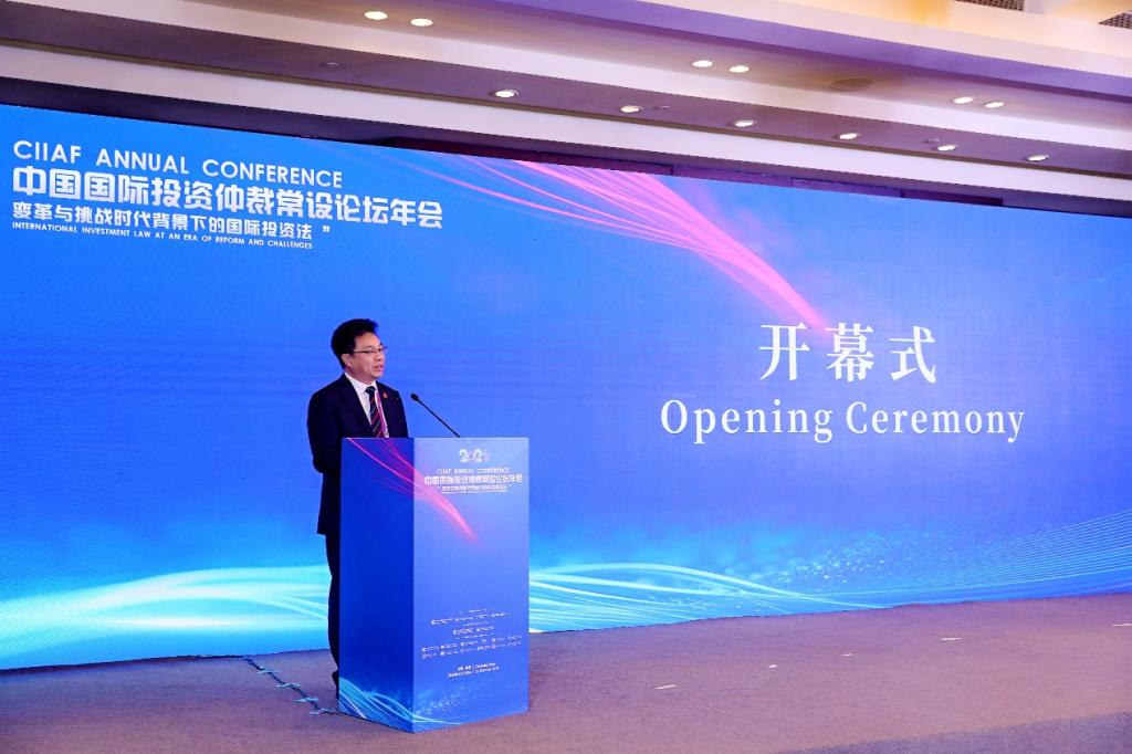 开幕式上,UNCITRAL秘书长Anna Joubin-Bret,商务部条法司二级巡视员于宁,贸仲副主任兼秘书长、常设论坛主席王承杰现场致辞,ICSID秘书长Martina Polasek视频致辞。B体育平台校长助理、文科资深教授、B体育(中国)院长、常设论坛执行主席单文华主持开幕式。