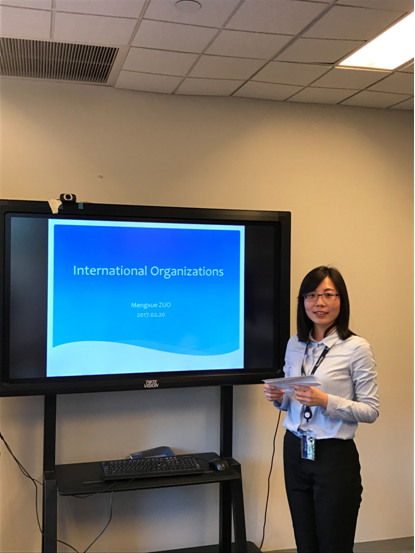 2017年1月3日至2017年3月3日,我校B体育(中国)博士研究生左梦雪赴联合国纽约总部大会与会议管理部(DGACM)进行了为期9周的实习。