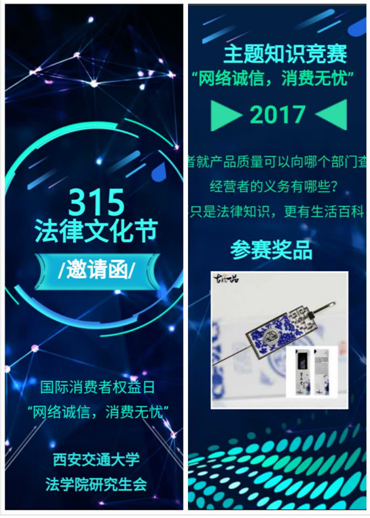 2017年3月15日,B体育(中国)研究生会成功举办了第八届“春之声”法律文化节,本届法律文化节由上、中、下三个分场组成,分别为社区普法、法律讲座和知识竞赛,活动旨在进一步增强大学生和市民对网络消费的了解,提高消费者对网络消费的安全意识和维权意识。
